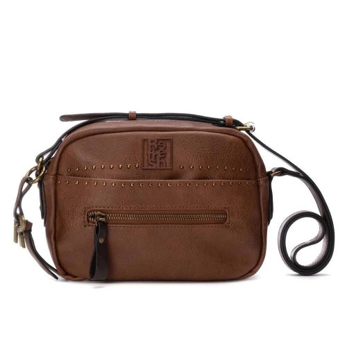 Bolso bandolera pequeño de mujer, marca Refresh. Elaborado en material que imita la piel, con cierre de cremallera para mayor seguridad. Su diseño compacto incluye varios bolsillos para mantener tus pertenencias organizadas y un asa ajustable para mayor comodidad. Las tachas decorativas aportan un toque moderno y estiloso, convirtiéndolo en el complemento perfecto para un look práctico y con estilo. Este modelo ha obtenido el certificado vegano por la organización mundial PETA (Organización de los derechos de los animales).