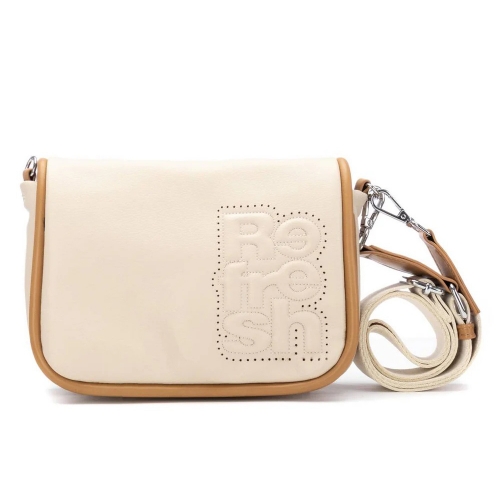 Bolso bandolera de mujer de la marca Refresh, elaborado en material sintético que imita la piel. Incorpora solapa con cierre mediante botón para mayor comodidad y seguridad. Un accesorio práctico y versátil, perfecto para acompañar tu día a día. 17 x 22 x 9 cm. .Este modelo ha obtenido el certificado vegano por la organización mundial PETA (Organización de los derechos de los animales).