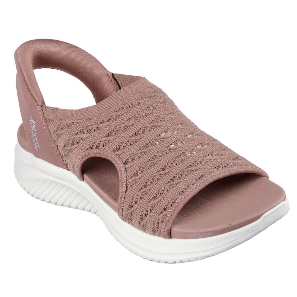 Disfruta de los días soleados con comodidad ecológica con las Skechers Hands Free Slip-ins®: Ultra Flex 3.0 - Sun Warmth. Fabricadas con materiales reciclados y diseñadas con nuestra tecnología Touchless Fit ®Heel Pillow™, estas sandalias con tira trasera presentan una parte superior de malla con banda en H y una plantilla acolchada Yoga Foam®. Our Planet Matters®: bueno para tus pies. Bueno para el mundo.®