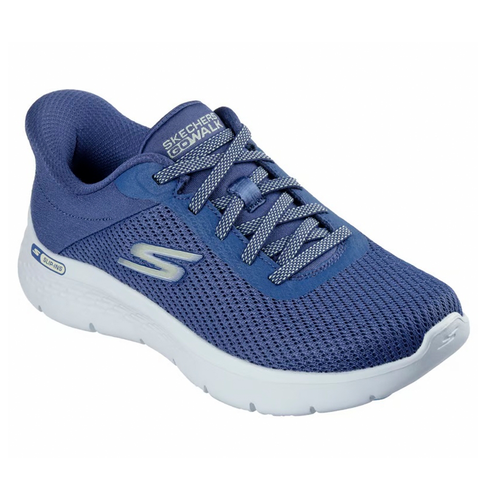 Disfruta de la comodidad y la amortiguación que te ofrece la Skechers Hands Free Slip-ins®: GO WALK Flex - Carla. Diseñado con nuestro sistema exclusivo Heel Pillow, este modelo slip-on deportivo vegano cuenta con una parte superior de malla deportiva y termosellada con cordones elásticos fijos, una cómoda plantilla con amortiguación Skechers Air-Cooled Memory Foam™ y amortiguación ligera ULTRA GO en la media suela con Flex Pillars para mayor apoyo.