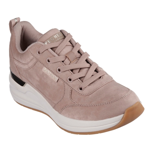 Step out in style and comfort wearing Skechers Street™ Billion 2 - Pretty 'N' Plush. This vegan fashion lace-up features a microfiber upper with metallic heel trim, chenille lining, wedge midsole, and a cushioned Skechers Air-Cooled Memory Foam® comfort insole.