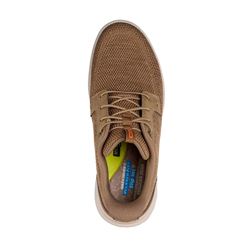 Disfruta de una gran comodidad durante todo el día con Skechers Hands Free Slip-ins® Relaxed Fit™: Sterling - Ramone. Diseñado con nuestro exclusivo Heel Pillow™, este modelo vegano slip-on de perfil bajo incluye una parte superior de malla de knit con cordones elásticos, plantilla Skechers Air-Cooled Memory Foam™ con infusión de carbón y amortiguación Skechers Memory Arch™ para mayor apoyo.