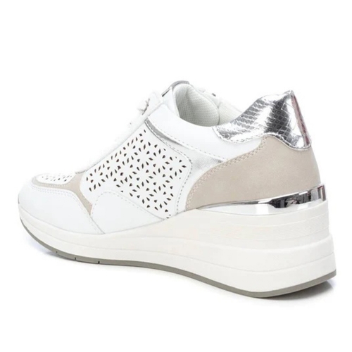 Zapatilla de mujer, de la marca Xti. Fabricada en material que imita la piel con detalle de troquelado decorativo. Cierre mediante cremallera. Con plantilla extraíble. Cuña con suela de goma antideslizante. Ideal para aportar unos cm sin perder comodidad. Este modelo ha obtenido el certificado vegano por la organización mundial PETA (Organización de los derechos de los animales).