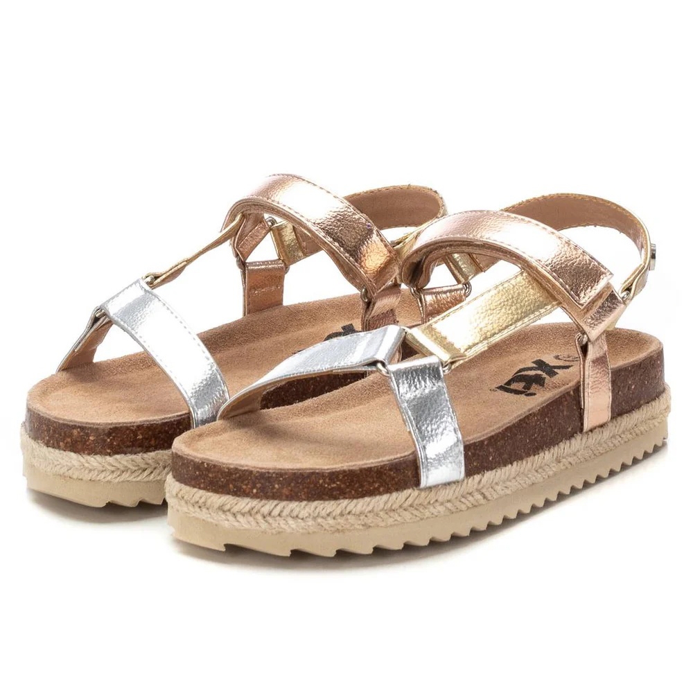 Sandalia multicolor de niña, de la marca Xti Kids. Fabricada en una suave antelina. Cierre mediante tira adherente. Plataforma rodeada por tira de yute con suela de goma antideslizante. Una sandalia ideal para completar tus looks más veraniegos esta temporada.